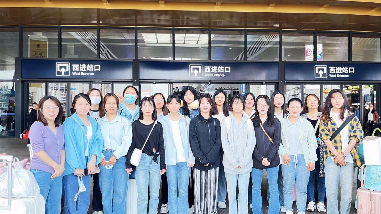 图3为7月14日美容美体专业华欣老师送学生赴上海乙十科技有限公司实习