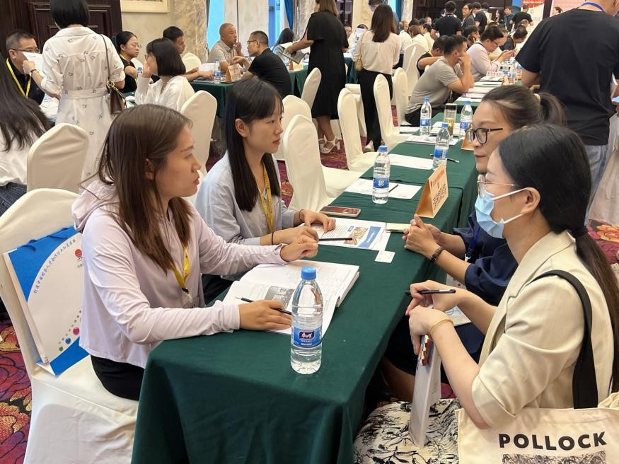 杭州会议现场与企业进行洽谈