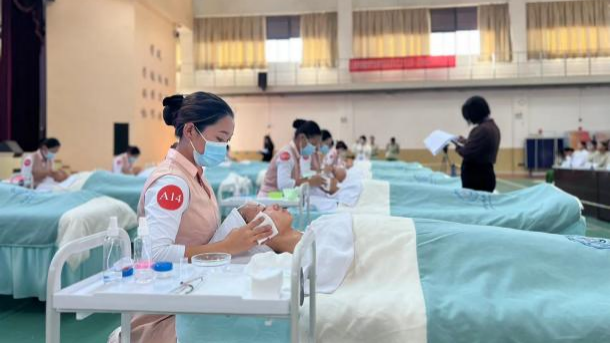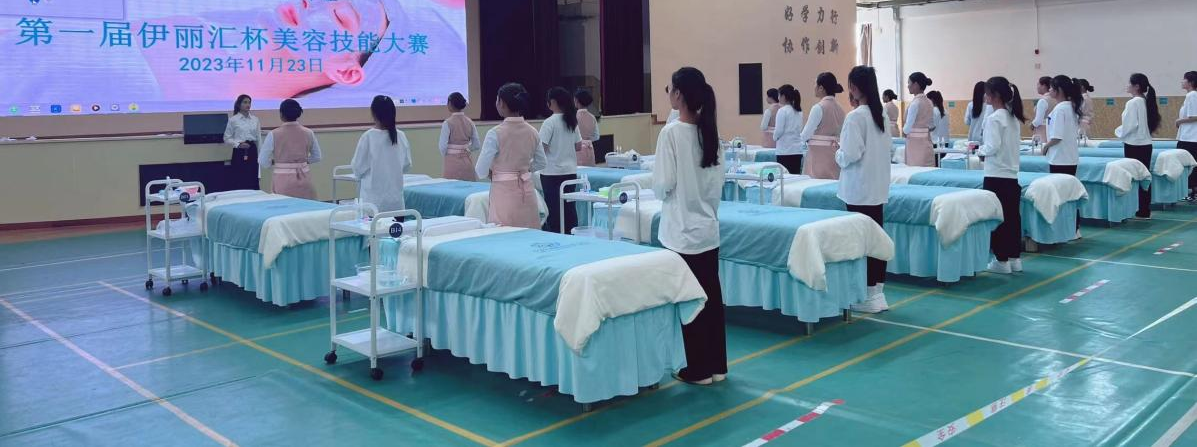 为展示校企合作育人成果,以赛促学、以赛促教。2023年11月23日下午艺术系美容美体艺术专业在广东伊丽汇美容科技有限公司的支持下在呈贡校区举办了第一届“伊丽汇杯”美容技能大赛。共5名教师、2名企业人员参与赛项筹备,260名学生参与了本次大赛观摩,14名“伊丽汇订单班”学生现场同台竞技。