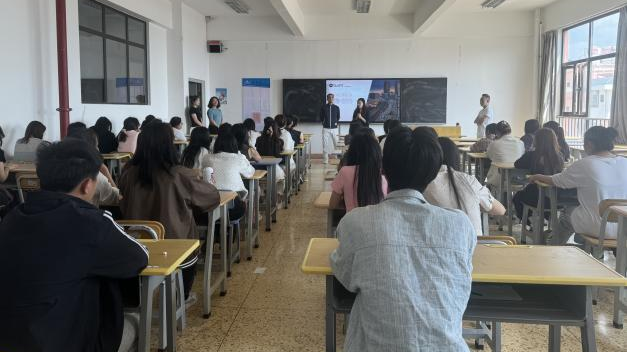 4月24日下午,星云美发连锁吴齐龙与黄超两位经理在实训楼505教室针对门店的发展历程及前景、工作环境、工资待遇等方面对学生开展了岗位实习内容宣讲,并完成现场答疑及面试。