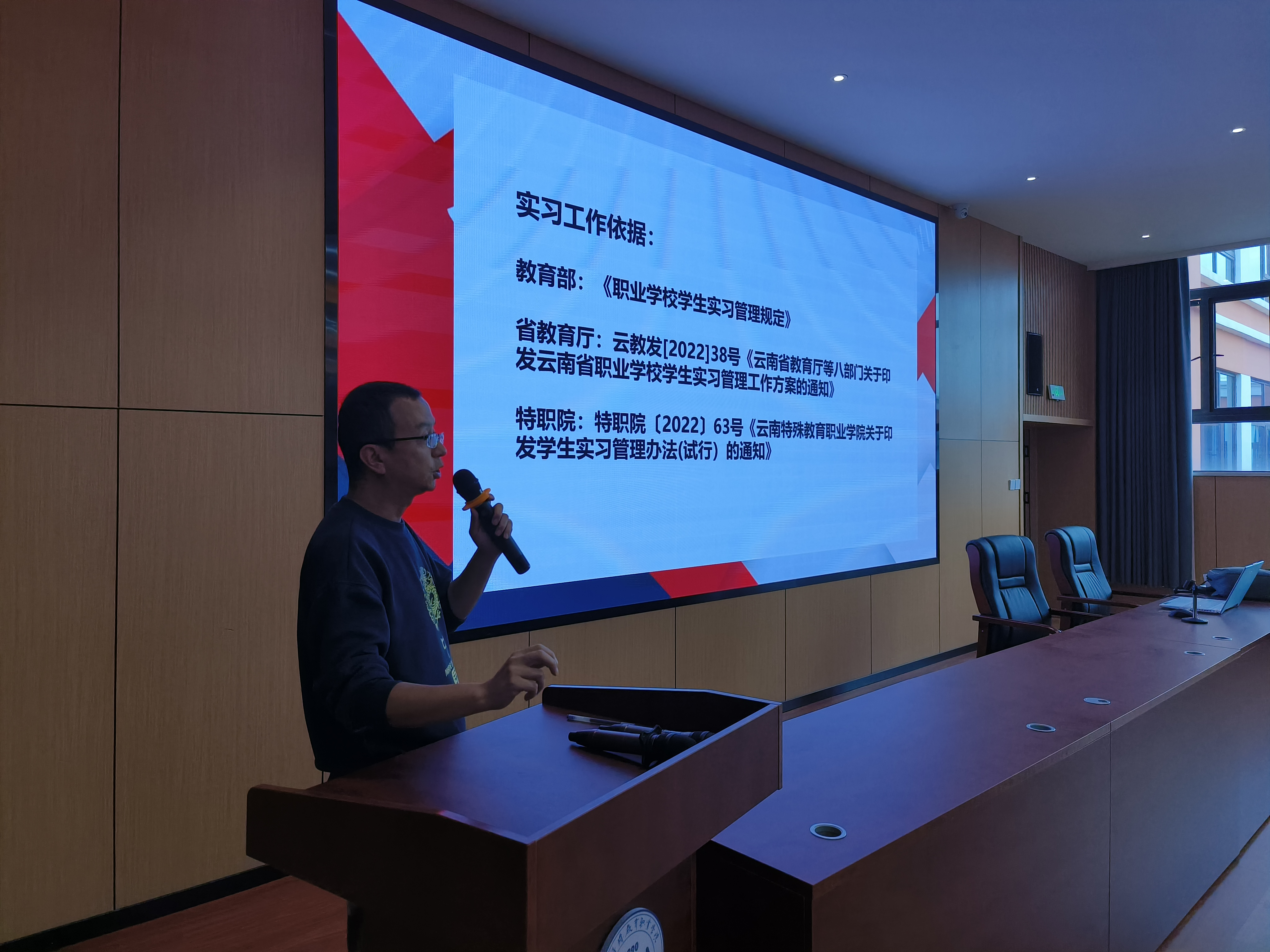 专业组教师谢毅传达了学校《职业学校学生实习管理规定(2021教育部版)》《云南省教育厅等八部门关于印发云南省职业学校学生实习管理工作方案》和《特职院〔2022〕63号ac米兰官网中文网站关于印发学生实习管理办法》等政策文件,并对实习备案材料撰写、实习纪律、实习管理和考核要求等内容进行讲解,让学生系统地了解岗位实习的全过程要求。
