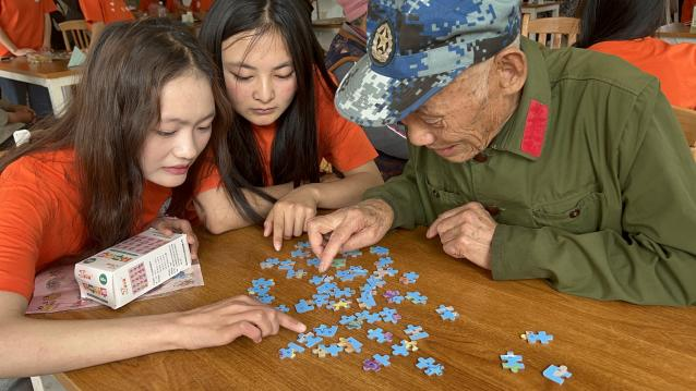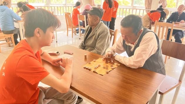 志愿者们陪伴老人们下棋、做游戏